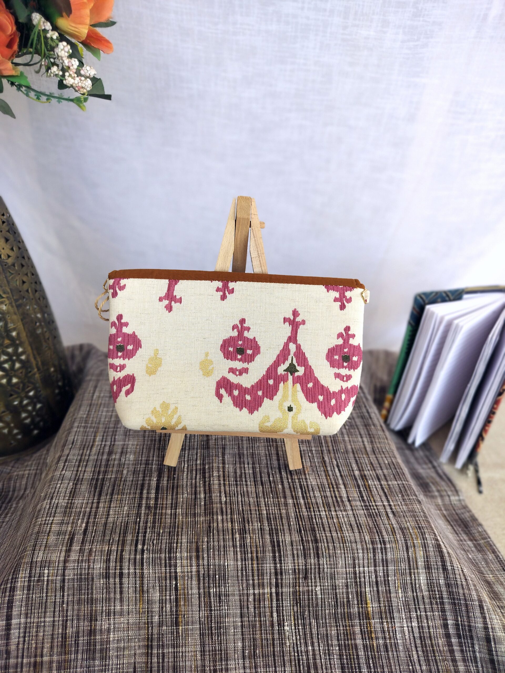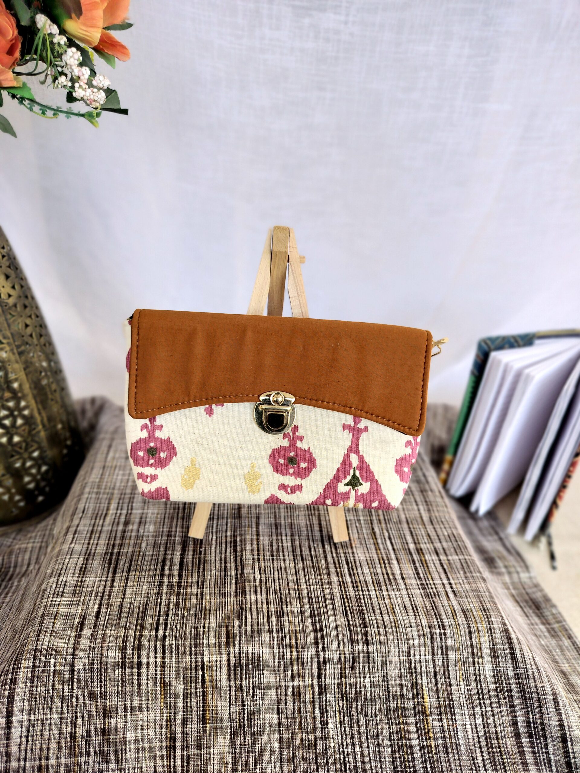 Add a pop of color to your look with this Animated Ikat Sling Bag. Crafted from upcycled fabric, this unique bag is both stylish and sustainable. It’s washable, features a zip inside, and comes with a adjustable sling and golden buckle. No leather used.