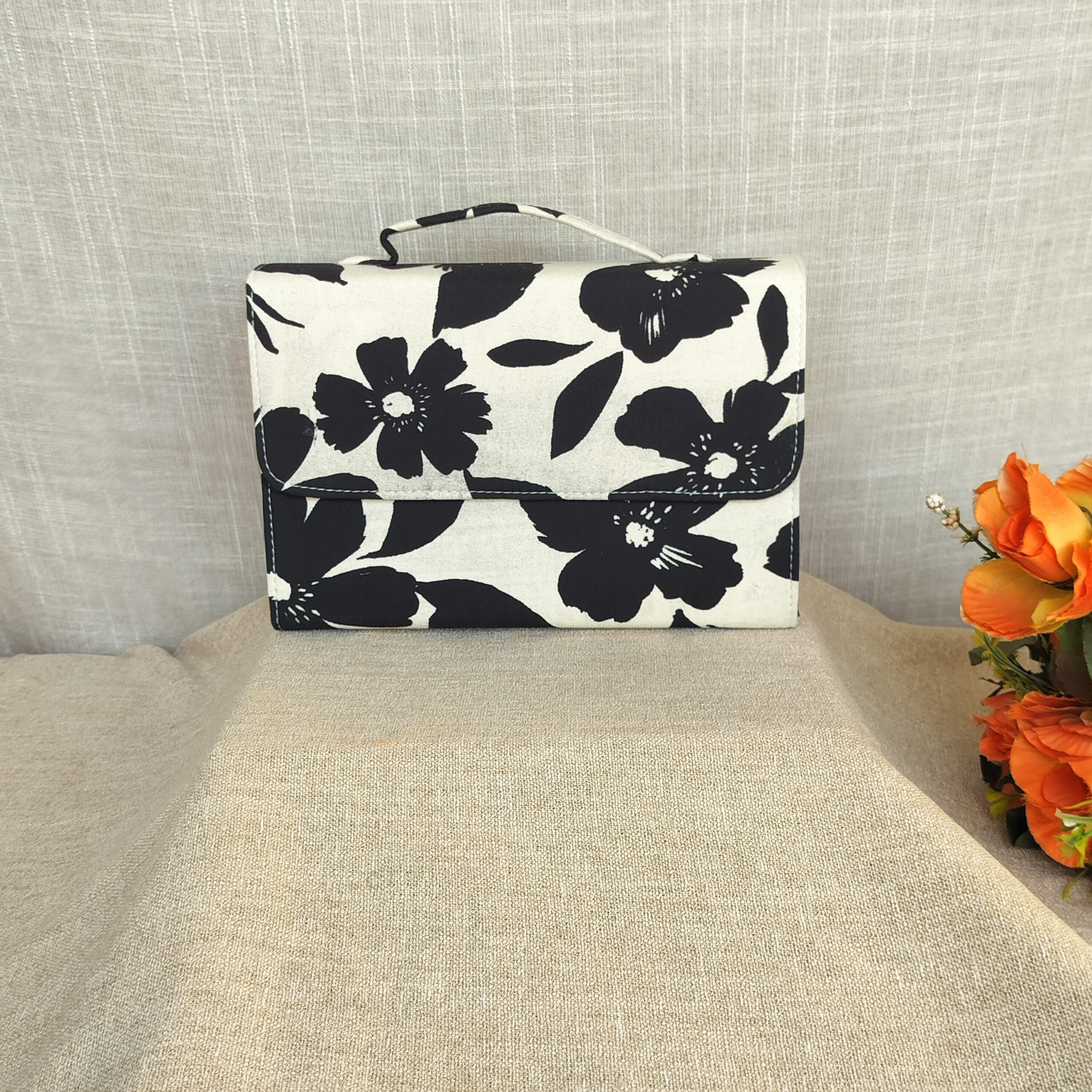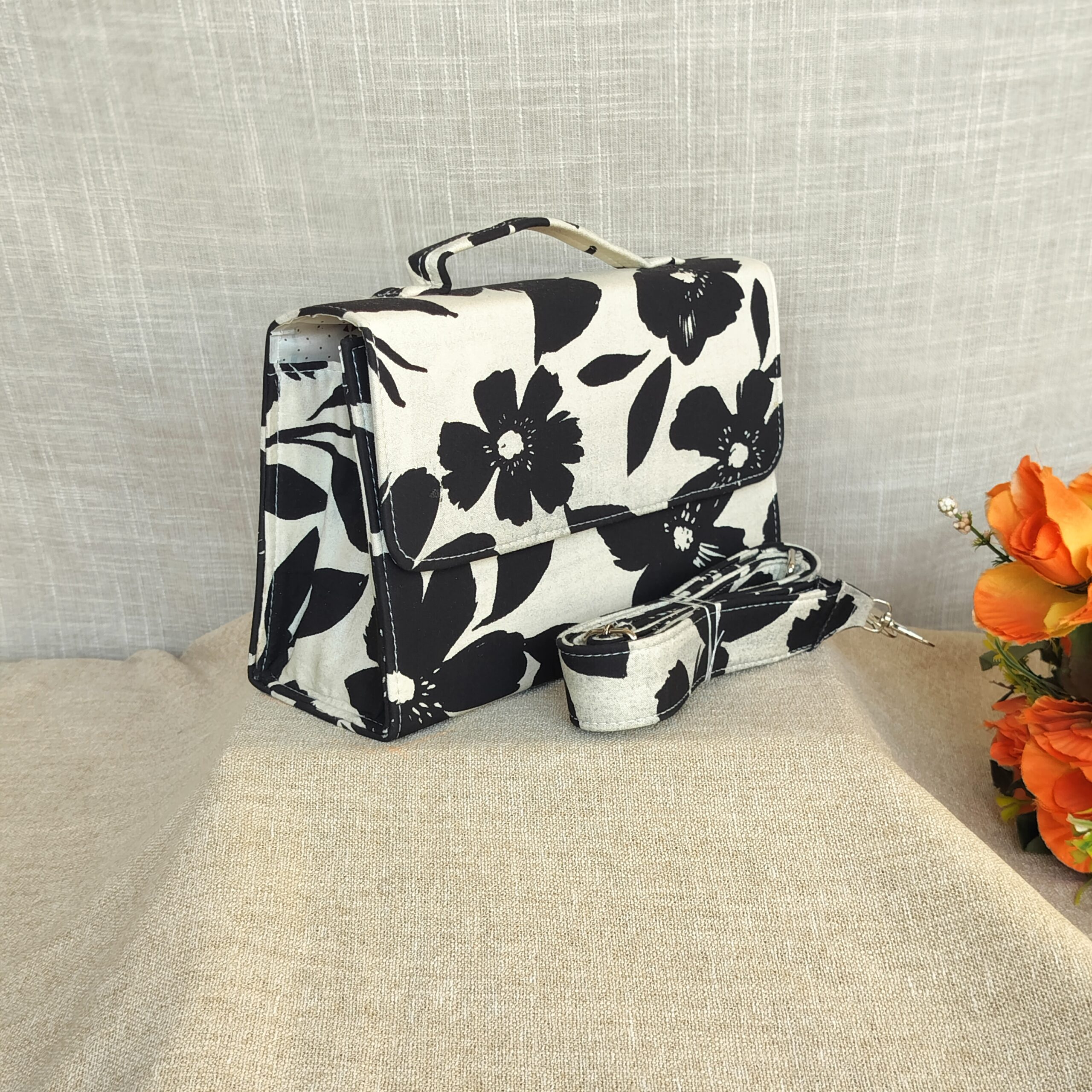 Introducing our handcrafted Black Floral Box Sling Bag With Handles! Featuring a beautiful floral design, this bag is both unique and sustainable – made from upcycled materials and easily washable. With an added handle, it’s perfect for any festive occasion. Get a festive vibe while being eco-friendly!
