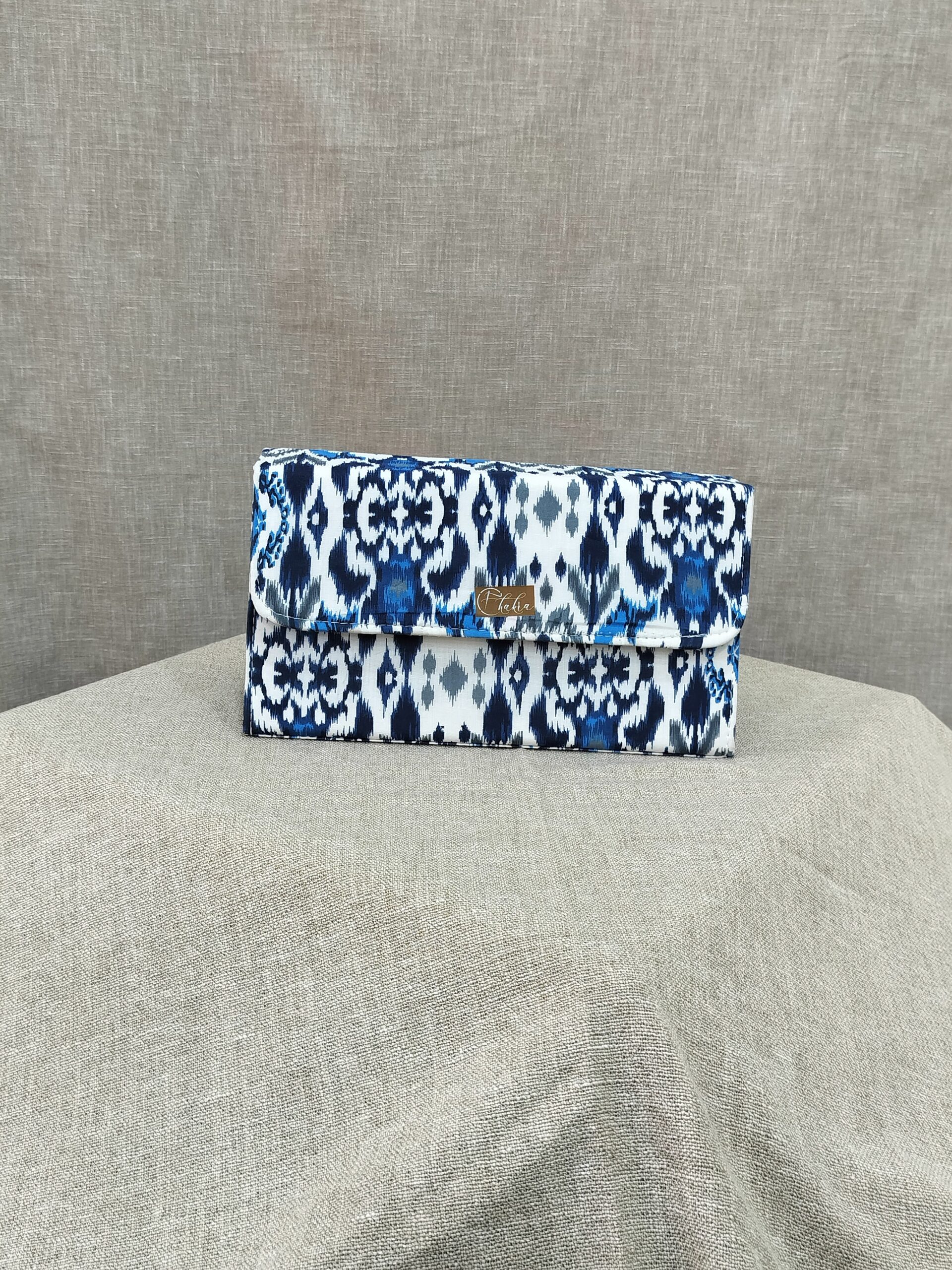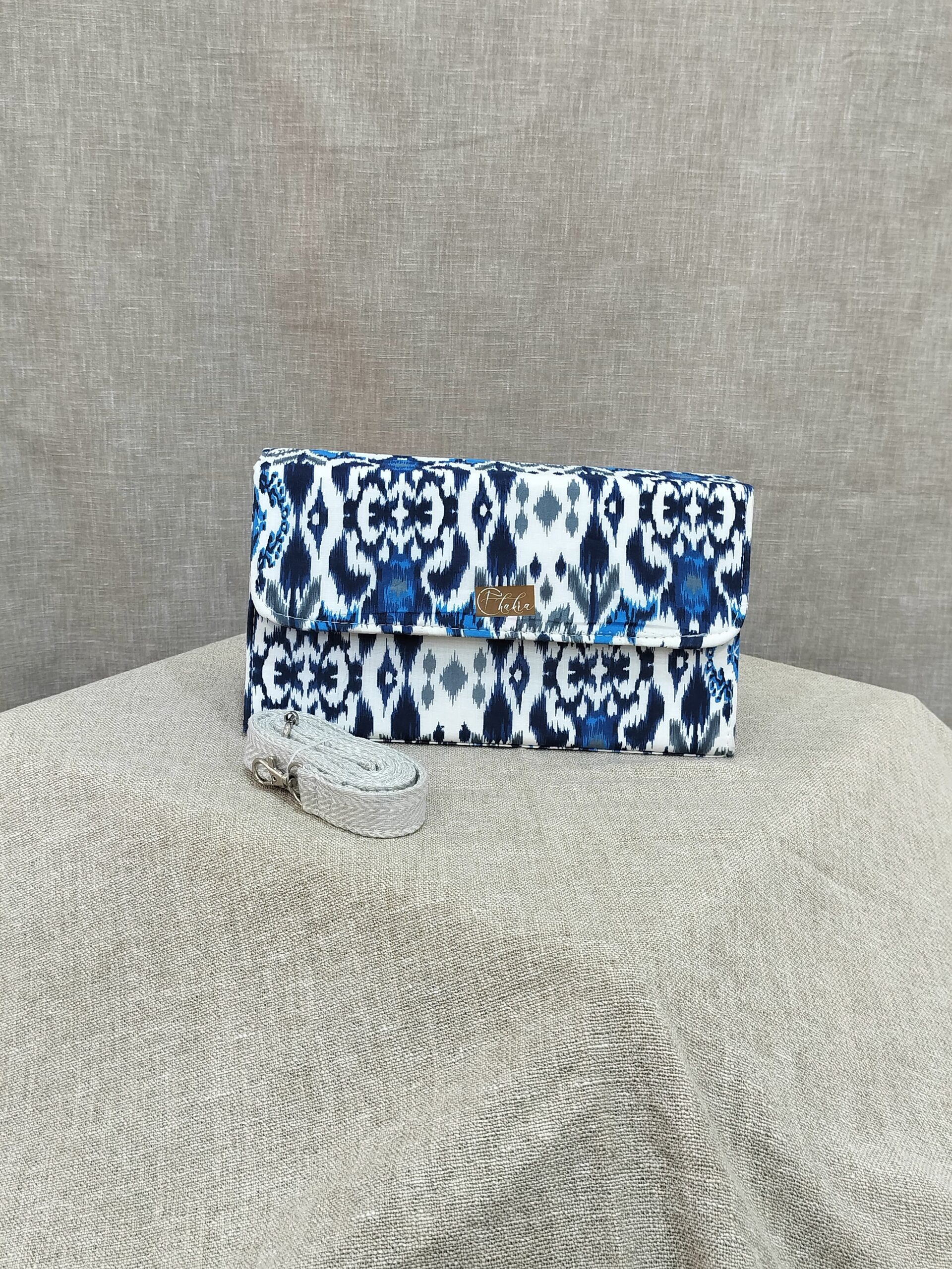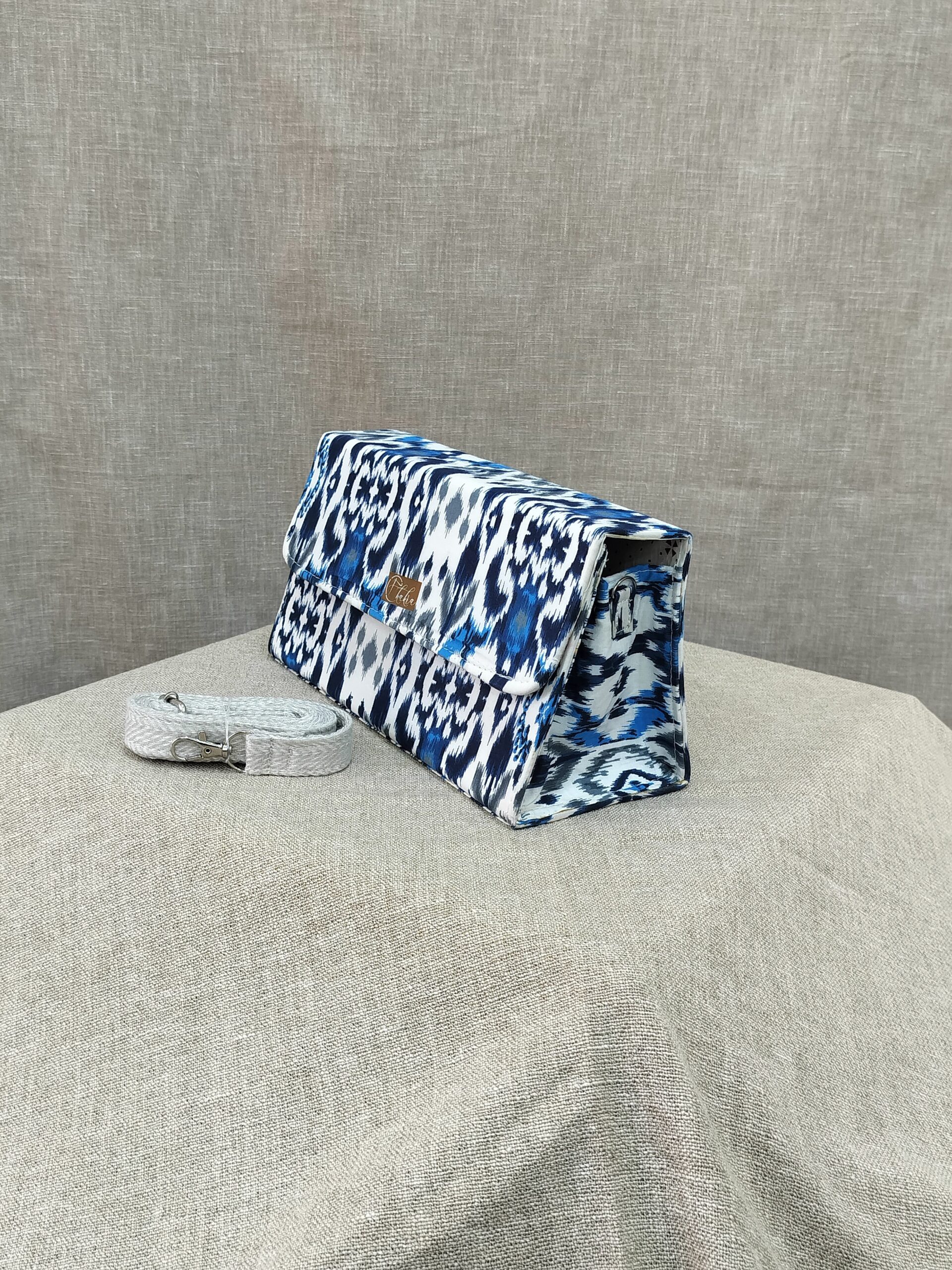 Handcrafted from upcycled materials, our Blue Ikat Box Sling Bags feature a unique and sustainable design. The classic ikat print adds a touch of style while the washable material allows for easy maintenance. Carry your belongings in a conscious and fashionable way.