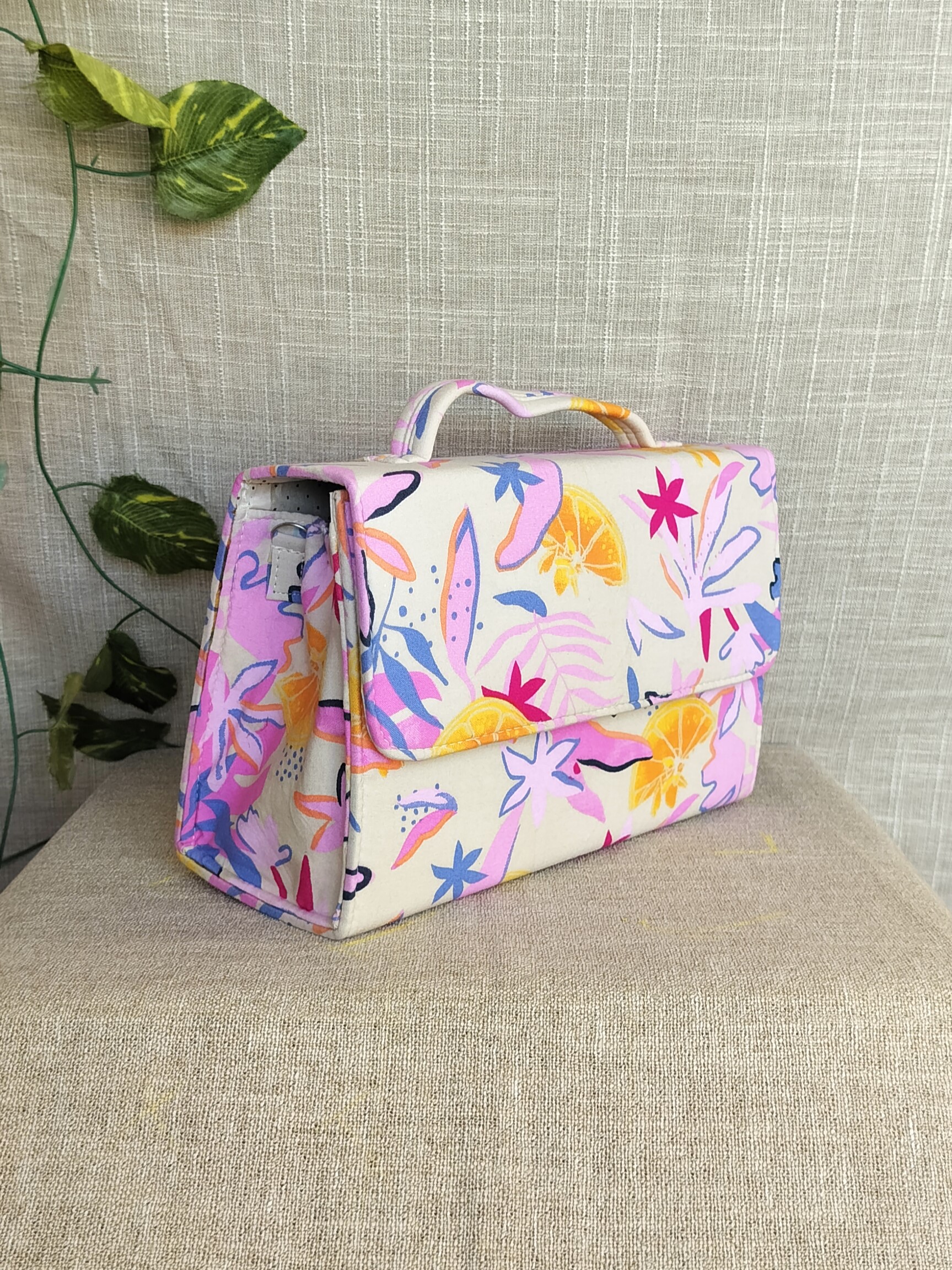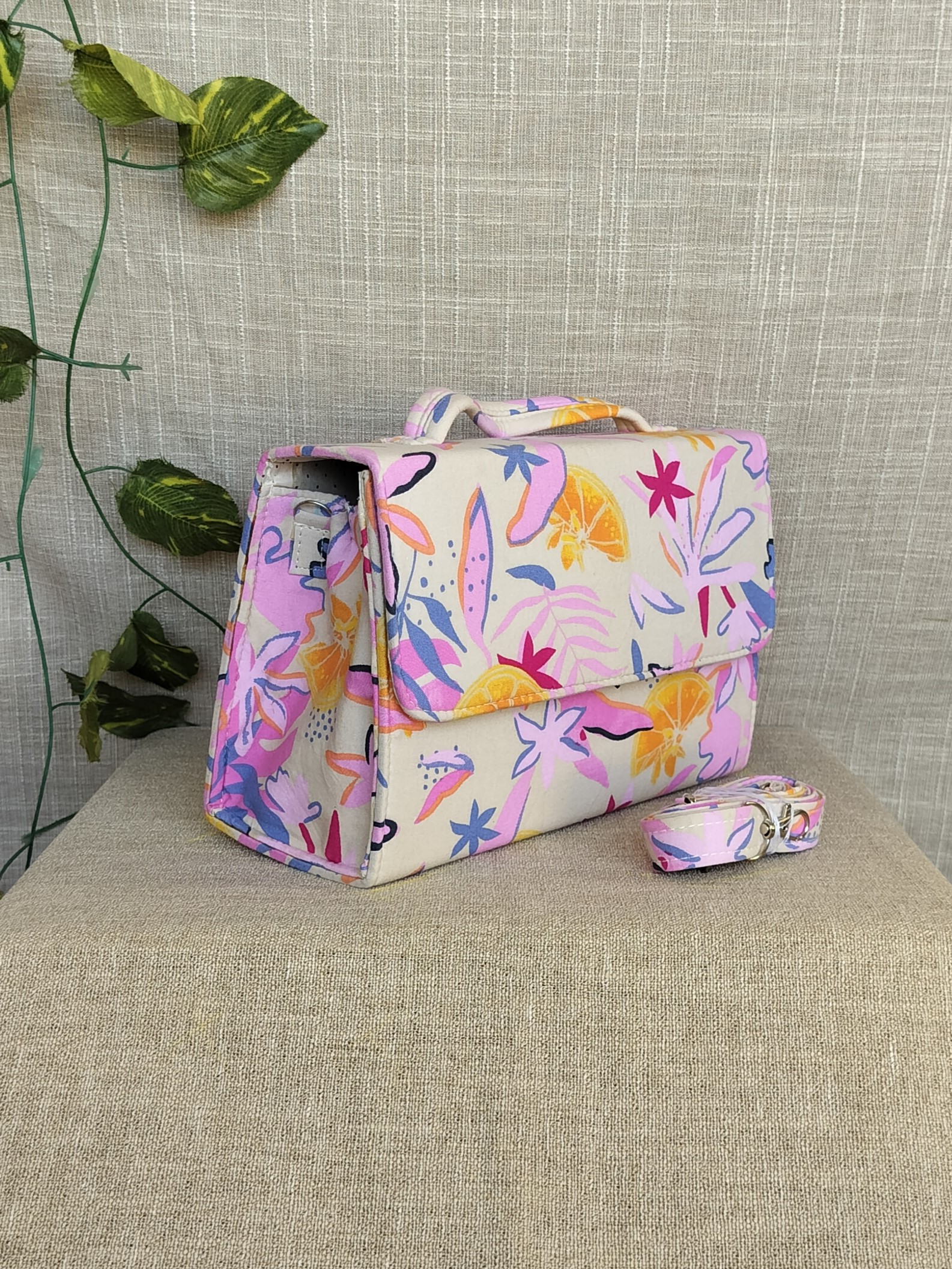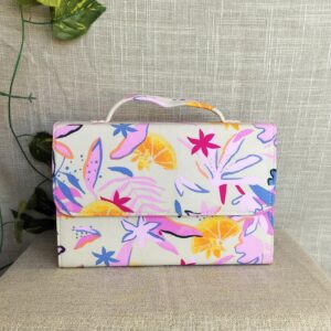 Introducing our handcrafted Flower Cocktail Box Sling Bag With Handles! Featuring a beautiful design, this bag is both unique and sustainable – made from upcycled materials and easily washable. With an added handle, it’s perfect for any occasion. Get a festive vibe while being eco-friendly!