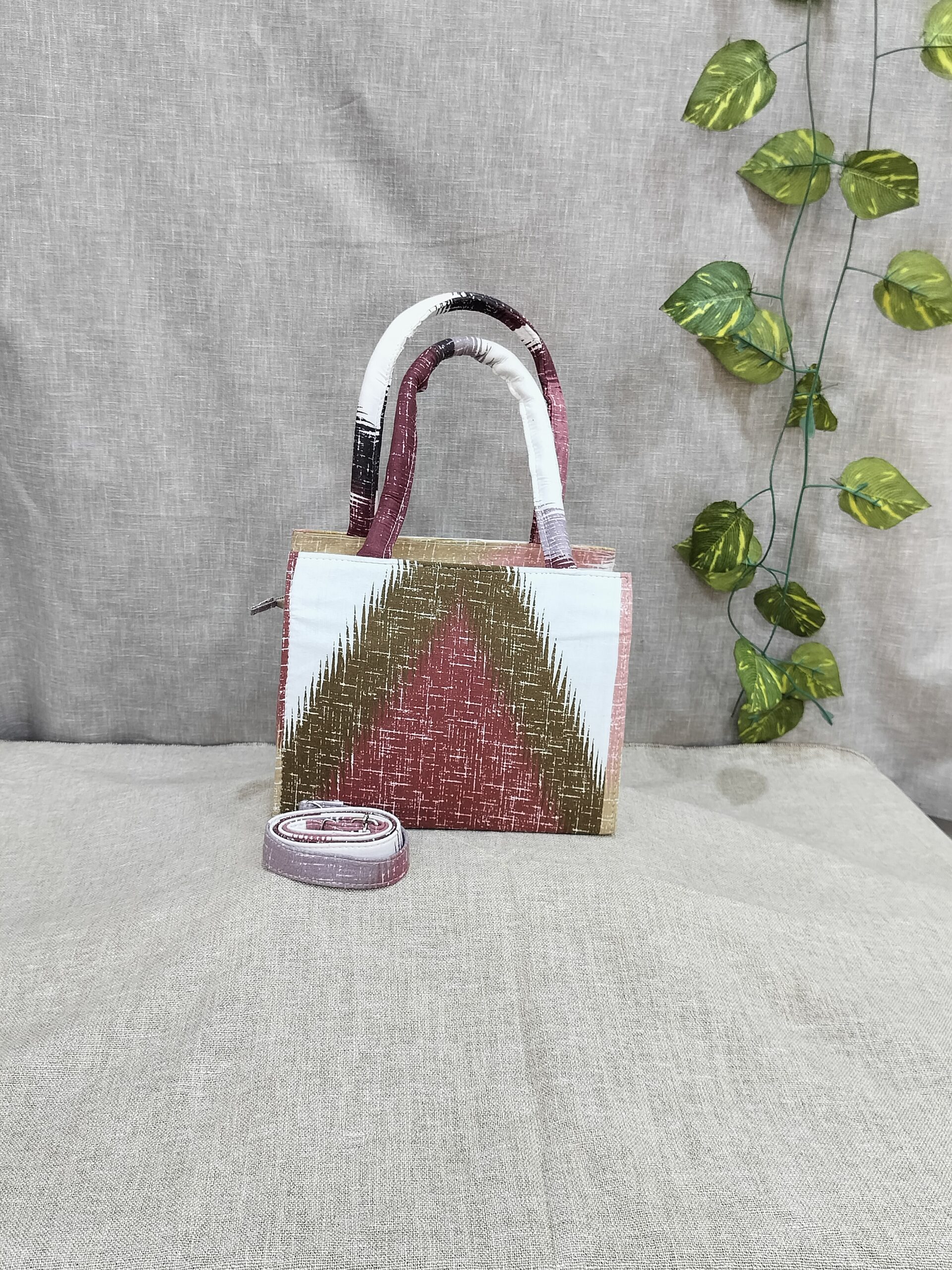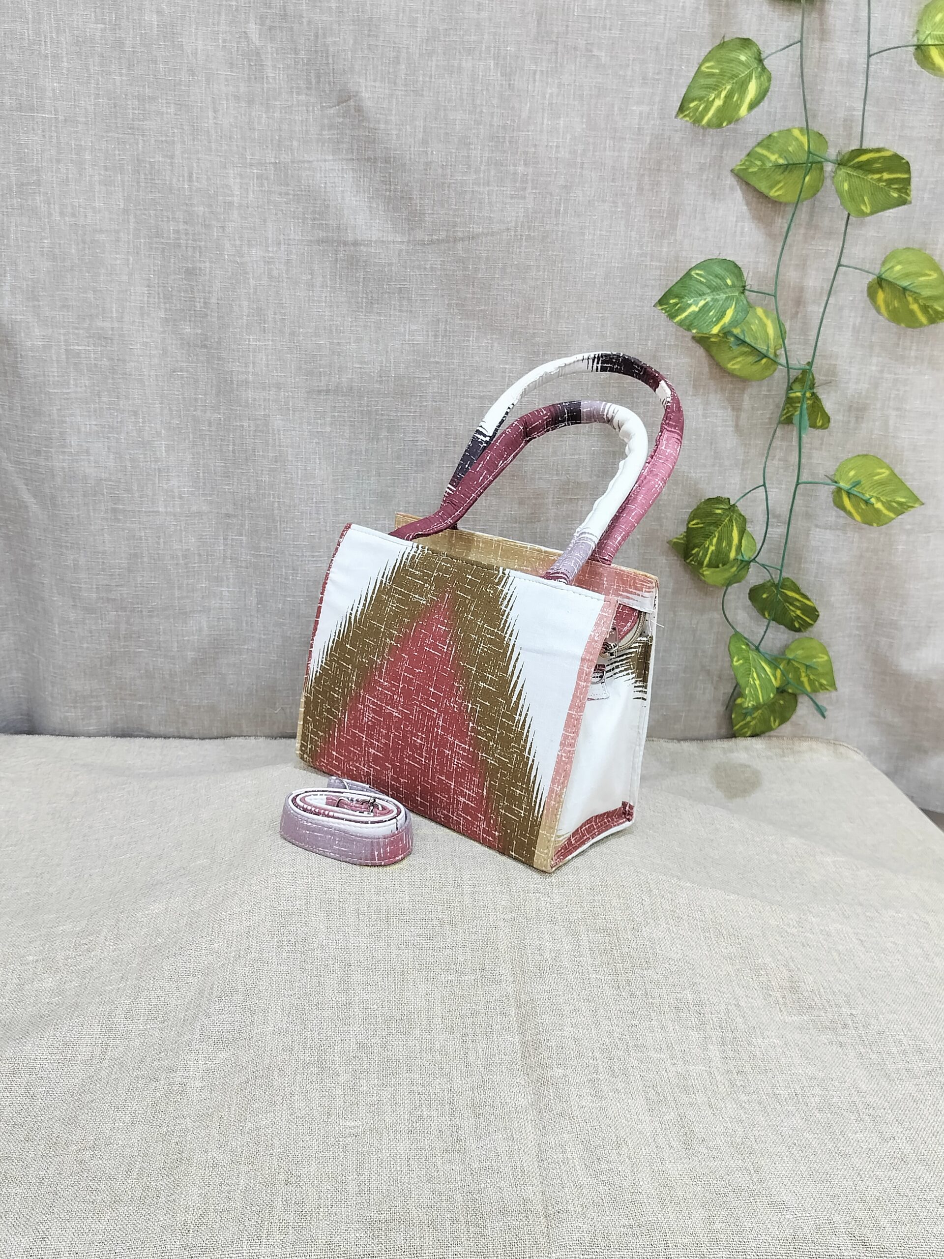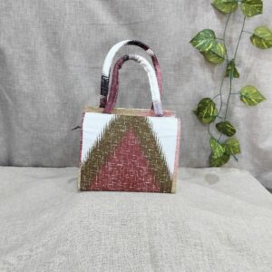 Introducing the sustainable and unique Ikat Tiny Tote Sling Bags. Handcrafted with a beautiful design, these bags are upcycled and washable. Choose eco-friendly fashion with our sustainable box sling bags.