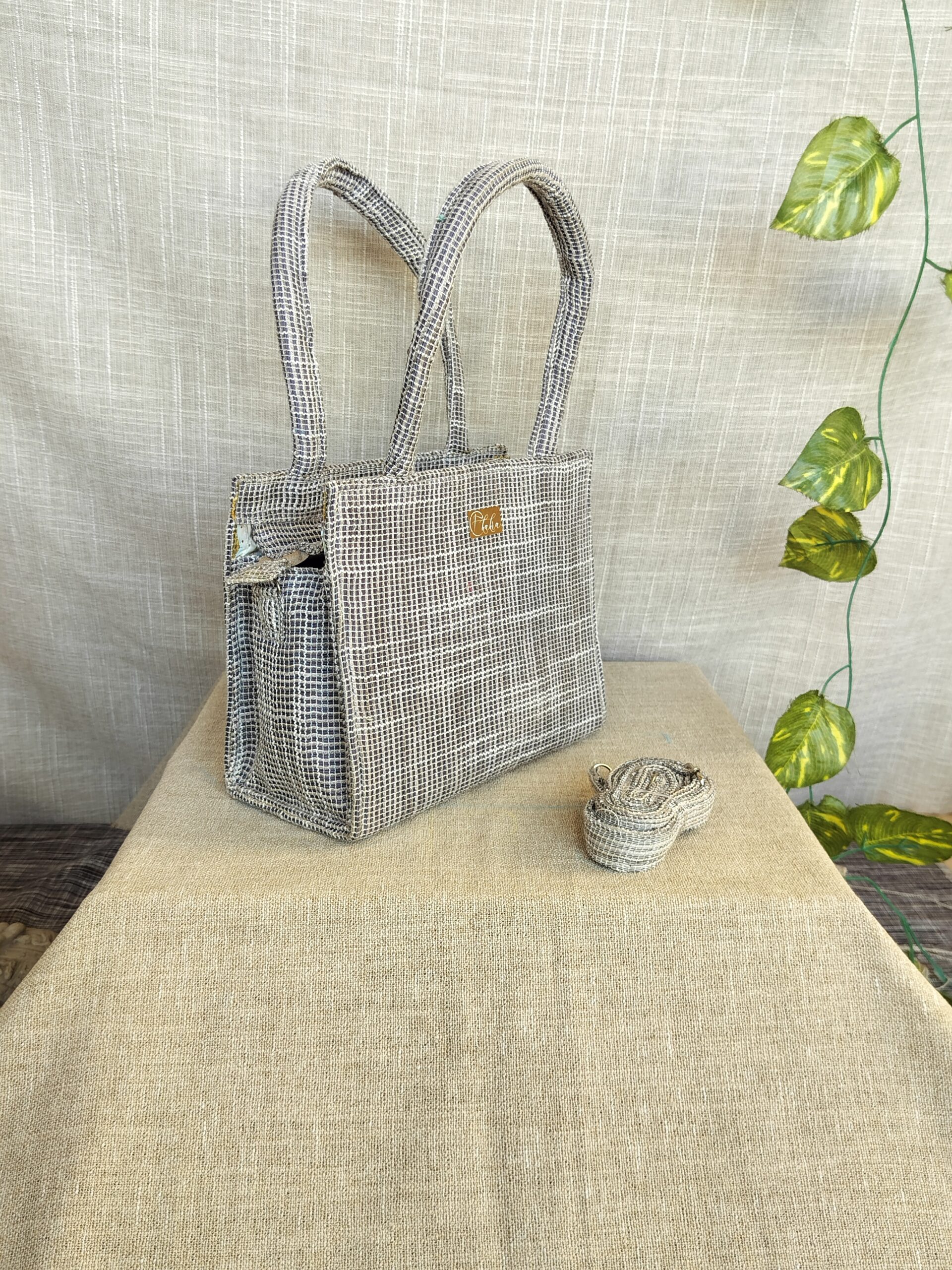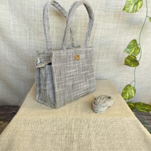 Handcrafted from upcycled materials, these sustainable Jute Grey Tiny Tote Bags are not only unique with their plain texture but also washable. The texture adds a elegant fun, while the sling bag design offers convenience. A fashionable and eco-friendly choice for any fashion expert.