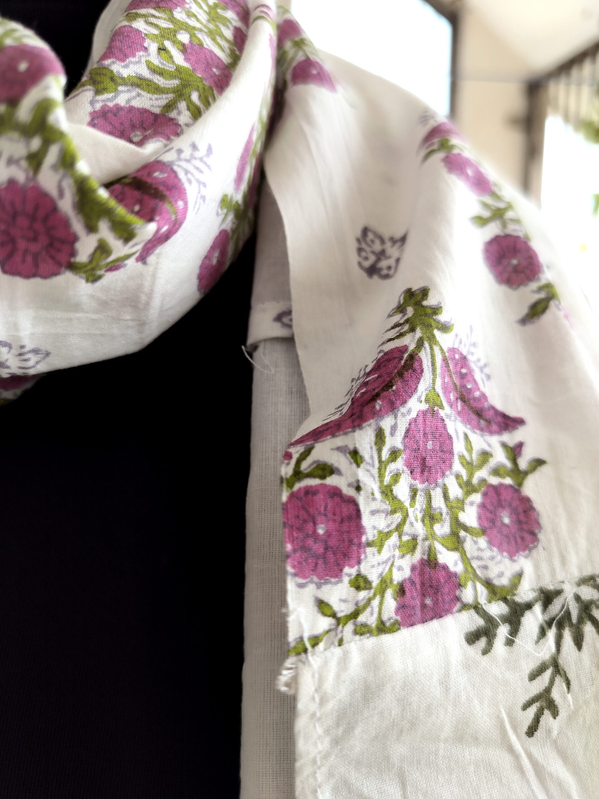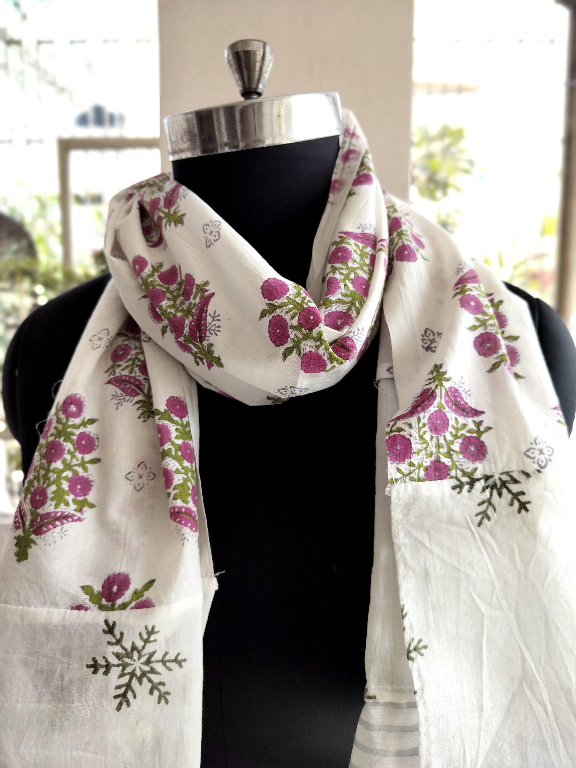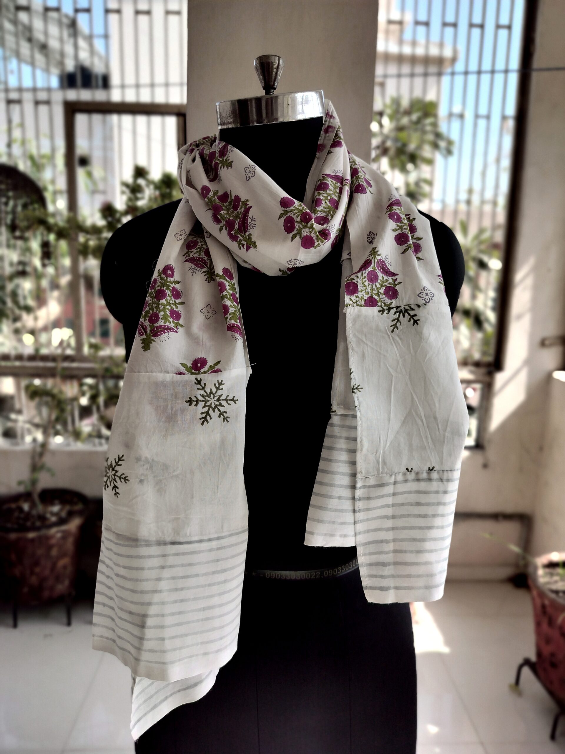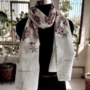 This cotton scarf features a beautiful block print design . The lightweight fabric is perfect for all seasons, providing both style and comfort. Made with high-quality materials and expert craftsmanship.