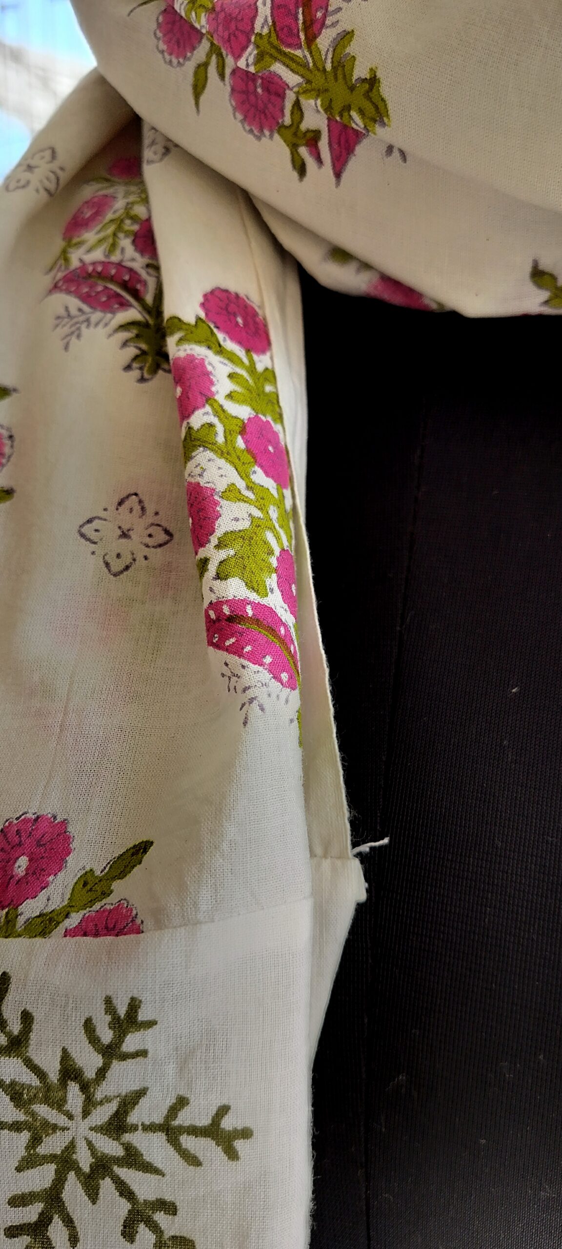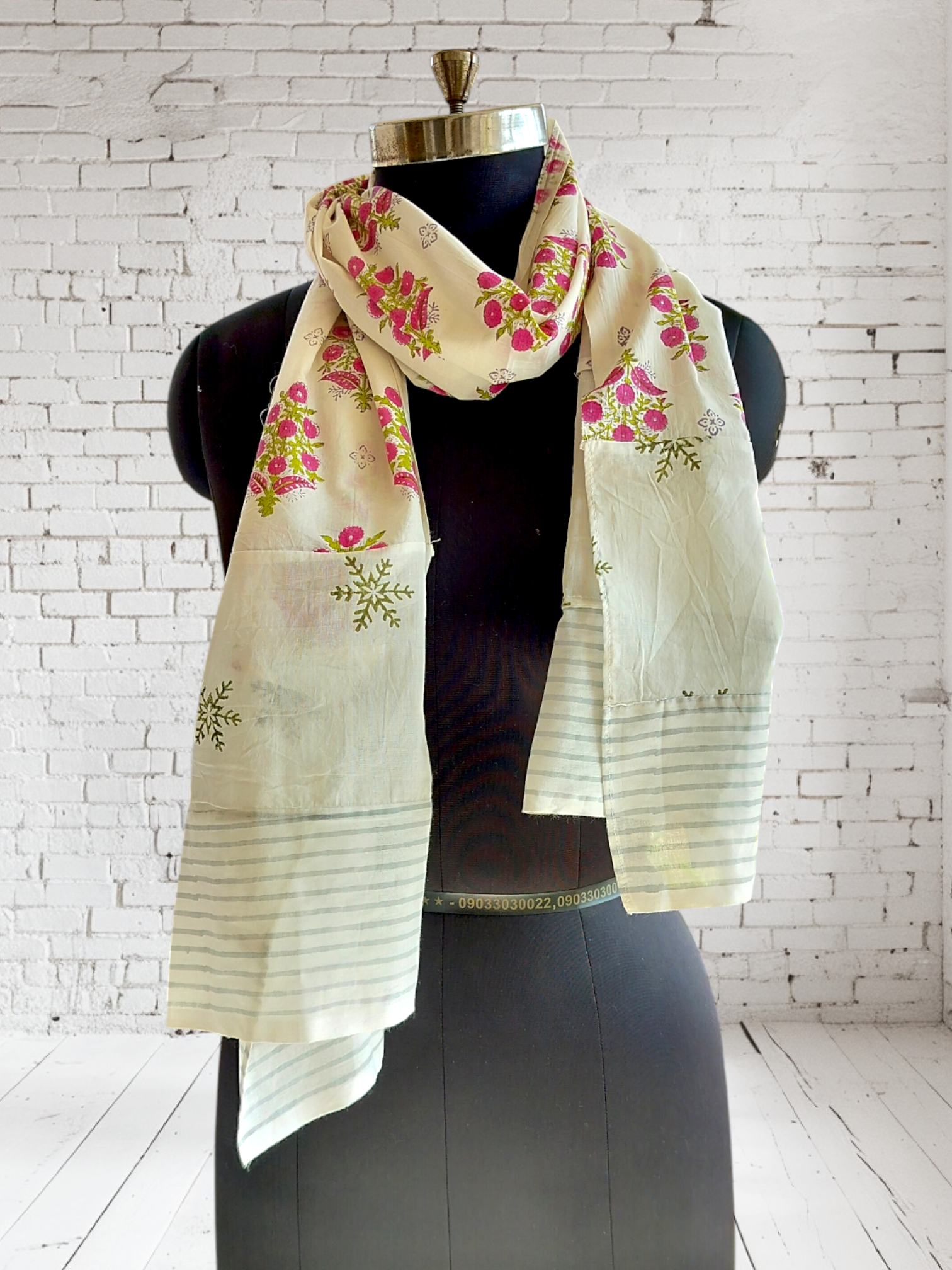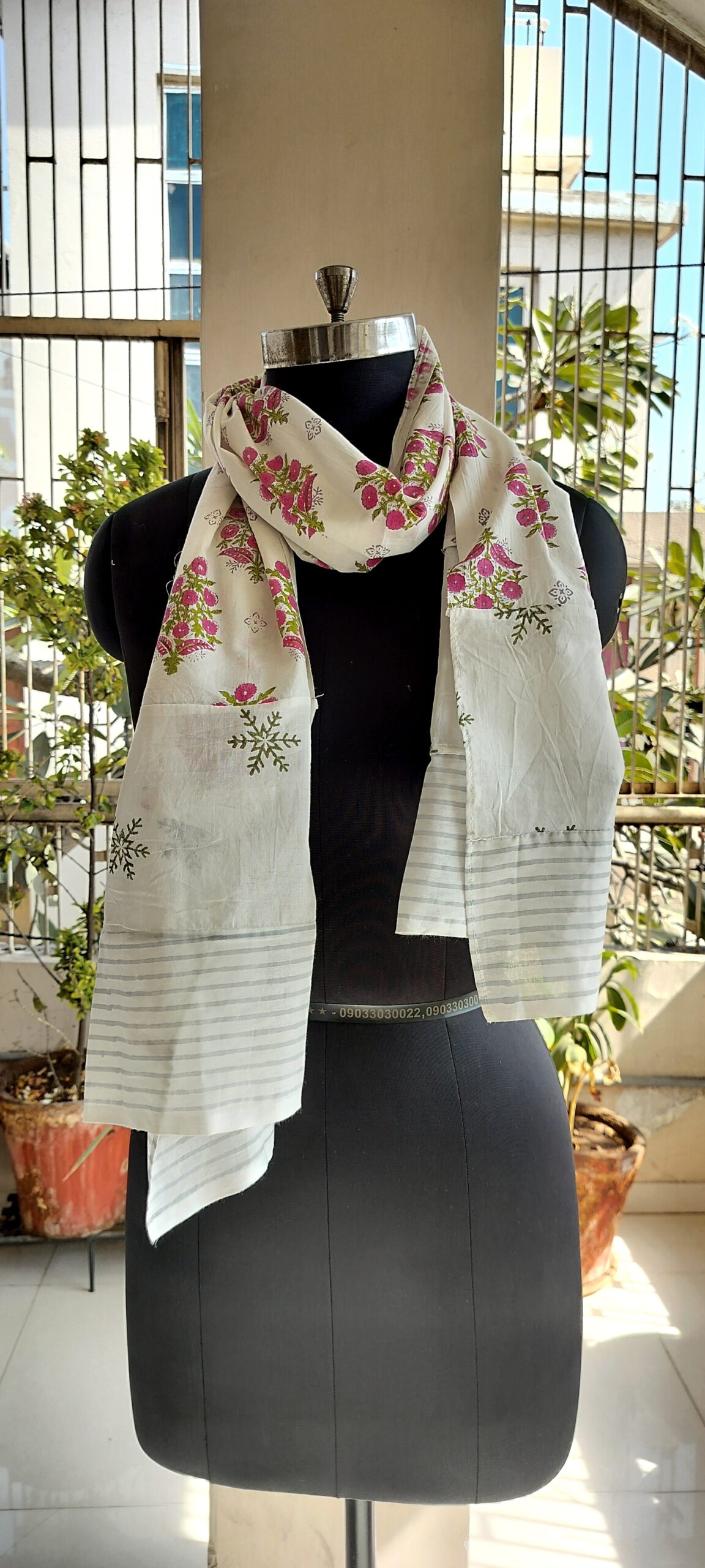 This cotton scarf features a beautiful block print design . The lightweight fabric is perfect for all seasons, providing both style and comfort. Made with high-quality materials and expert craftsmanship.