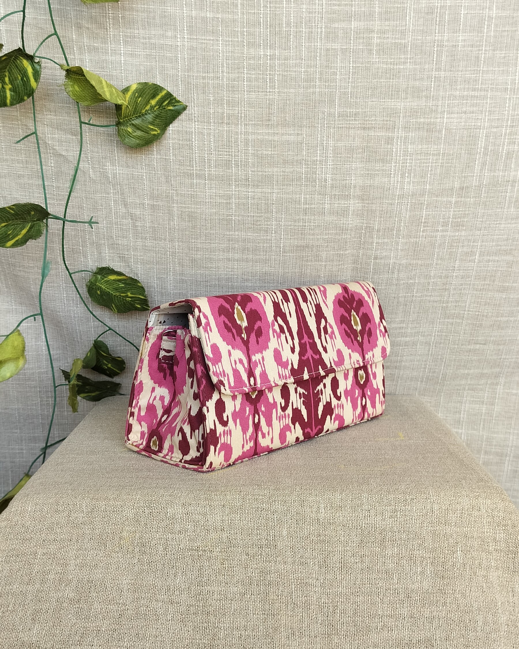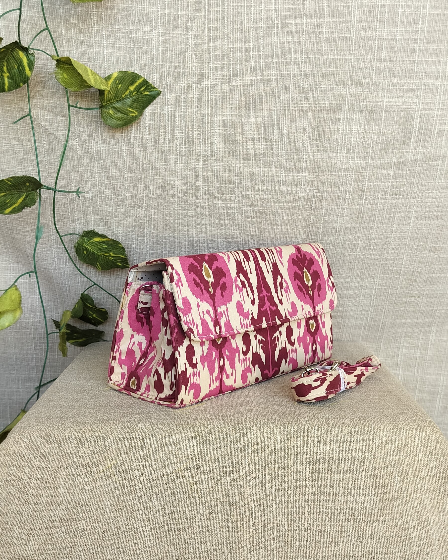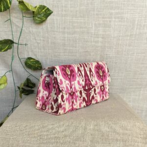 Expertly crafted and washable, our Pink Tea Tree Box Sling Bags are truly one-of-a-kind. Made from upcycled materials, these sustainable bags are not only stylish but also environmentally friendly. Perfect for the eco-conscious fashion lover.