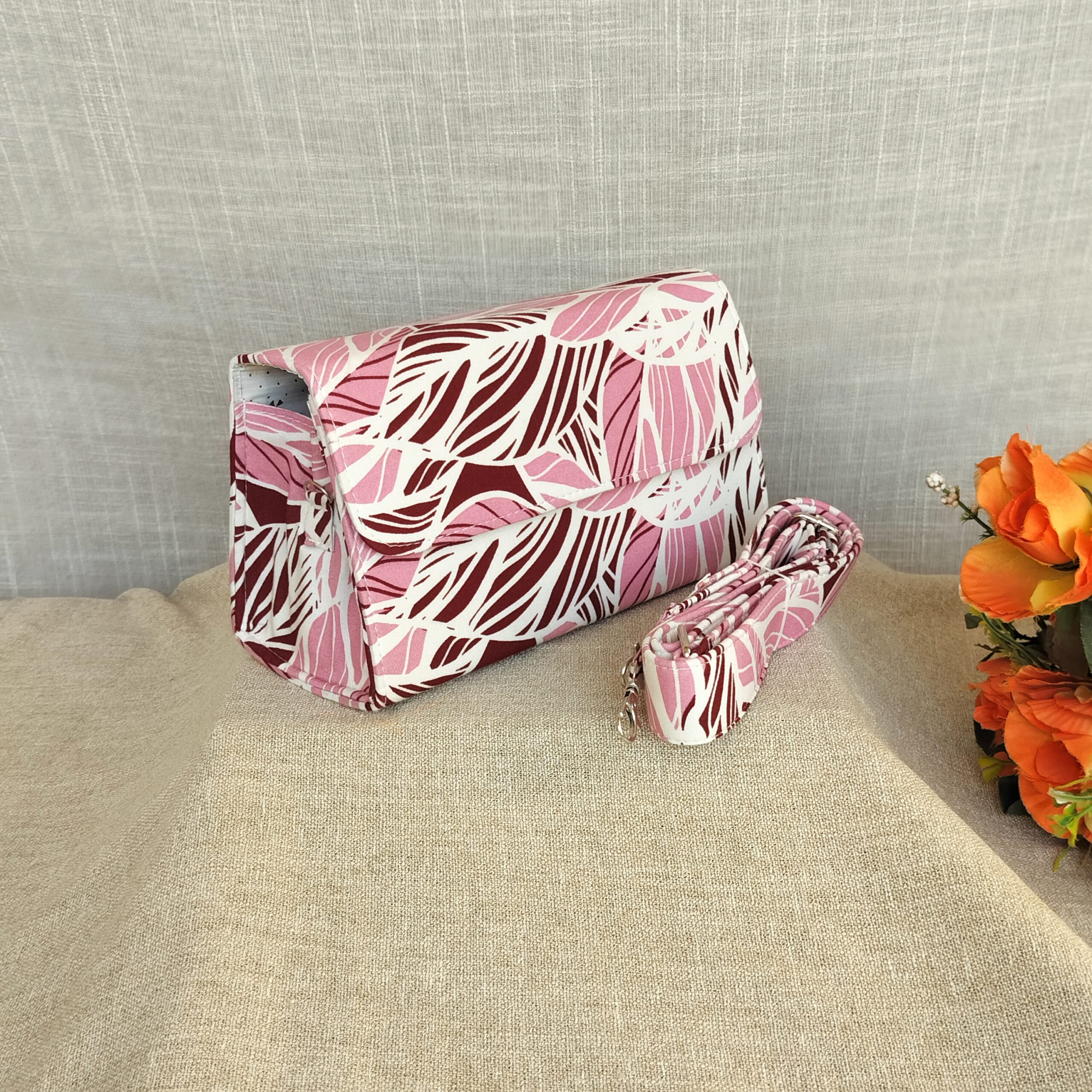 Introducing Tea Rose Box Sling Bags. Handcrafted with a sustainable and washable design, these unique floral bags feature a convenient zip partition inside. Make a statement while reducing waste with our upcycled bags. Perfect for a day at the carnival or any occasion.