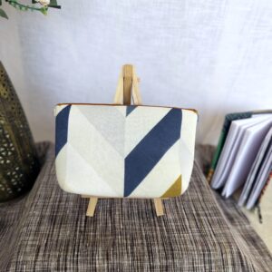 Add a pop of color to your look with this White Geometric Sling Bag. Crafted from upcycled fabric, this unique bag is both stylish and sustainable. It’s washable, features a zip inside, and comes with a adjustable  sling and golden buckle. No leather used.