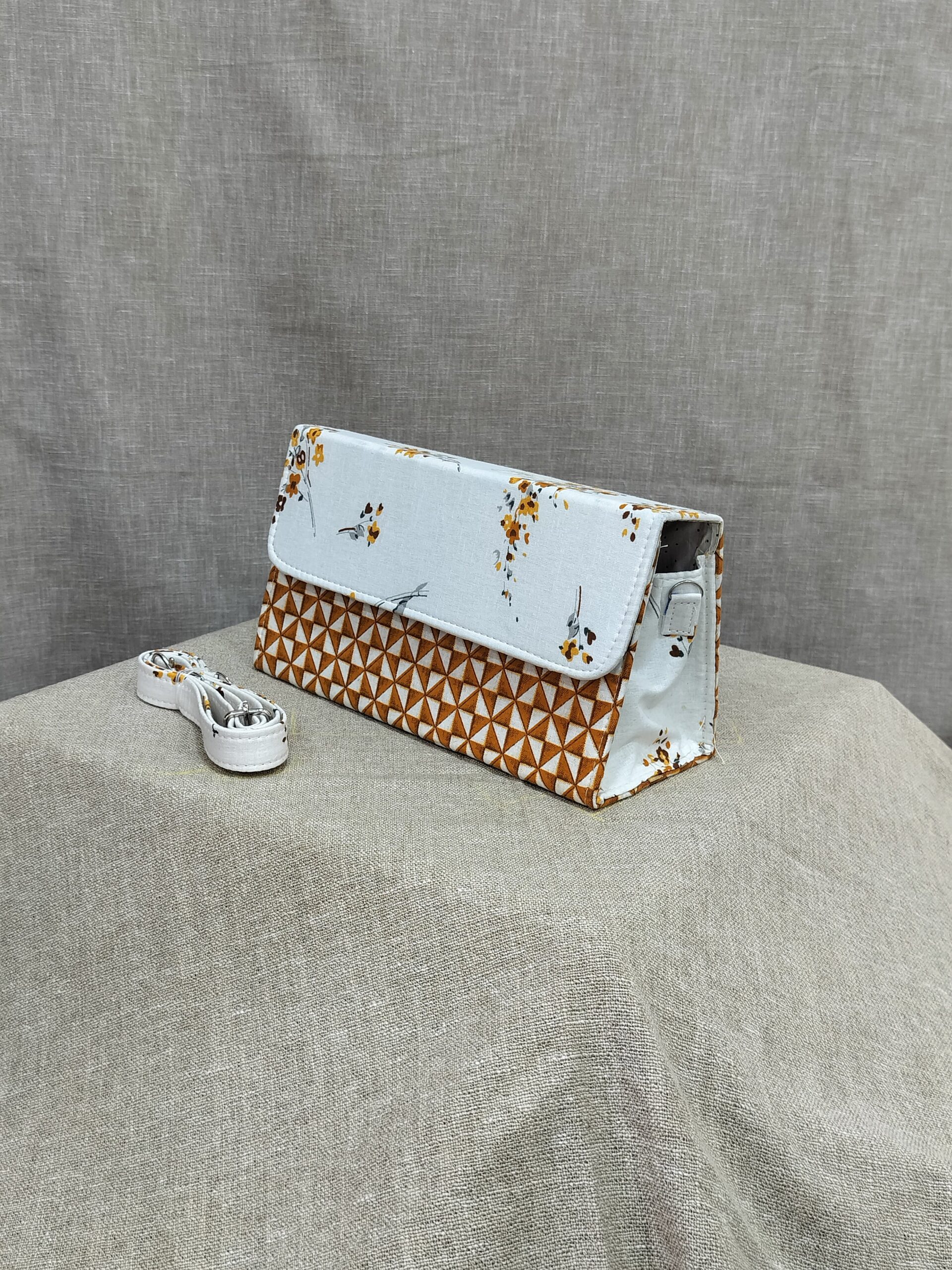 These White & Mustard Box Sling Bags are not only handcrafted with a unique mix of floral and geometric designs, but they are also washable and sustainable. Made from upcycled materials, these bags are perfect for the eco-conscious consumer.